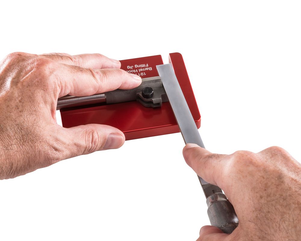 Fitting a new barrel into a 1911 is one of those jobs that separates a good build from a frustrating one. If you’ve ever tried to file a barrel hood freehand, you know how easy it is to take off too much material or end up with an uneven fit. That’s where this 1911 Barrel Fitting Fixture comes in. Designed by master gunsmith Randy Lee, this simple tool holds your barrel securely in the correct position so you can precisely file the hood (both length and width) for a proper fit to your slide. No more guessing, no more ruined barrels. Whether you’re building a new pistol or swapping in a match-grade barrel, this fixture takes the headache out of the job.