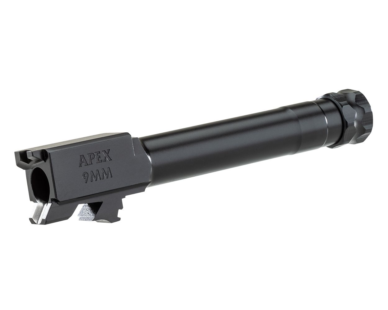You’ll need a 1/2-28 direct-thread suppressor mount or a 1/2-28 piston for your suppressor. If your slide has a loaded chamber indicator (LCI), you must either remove the LCI tab entirely or install the Apex No Profile LCI Block to keep the barrel from binding. No other parts are required.