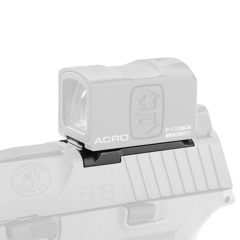 If you’ve got an FN 509 with the factory Low Profile Optics Mounting System™, you already know the struggle of stacking adapter plates just to mount a red dot. That extra height can mess with your sight picture and add unnecessary bulk. This optic mount solves that problem by letting you attach an Aimpoint ACRO, Steiner MPS, or any ACRO-footprint optic directly to the slide—no MRD insert needed. It’s machined from solid steel with a black oxide finish, so it’s tough enough for range days, classes, or just plinking in the backyard.