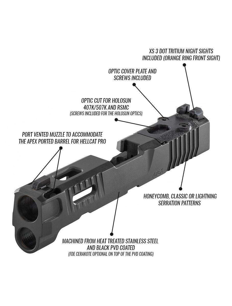 - Works with all Apex aftermarket Hellcat slide components and barrels
