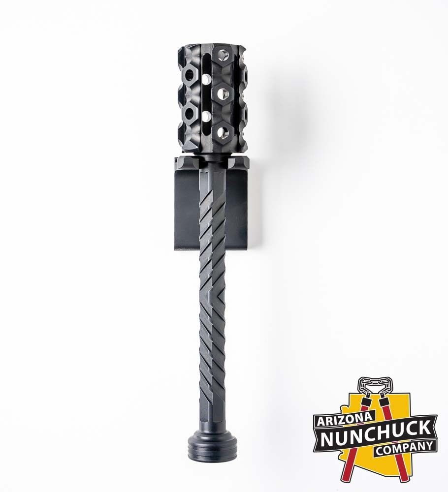 You’ve got one of our favorite conversation starters—an AZ Nunchuck Co. wall hanger, a Spike Maul, or maybe even a Muffler Bearing. But right now it’s just sitting in a drawer or leaning in a corner, hidden away where nobody can appreciate how cool it actually is. That’s where the Mr. Wall Mount comes in. This simple, solid aluminum mount lets you display your AZ Nunchuck Co. gear right on the wall—safe, secure, and ready to show off. No more digging through the closet to find it.